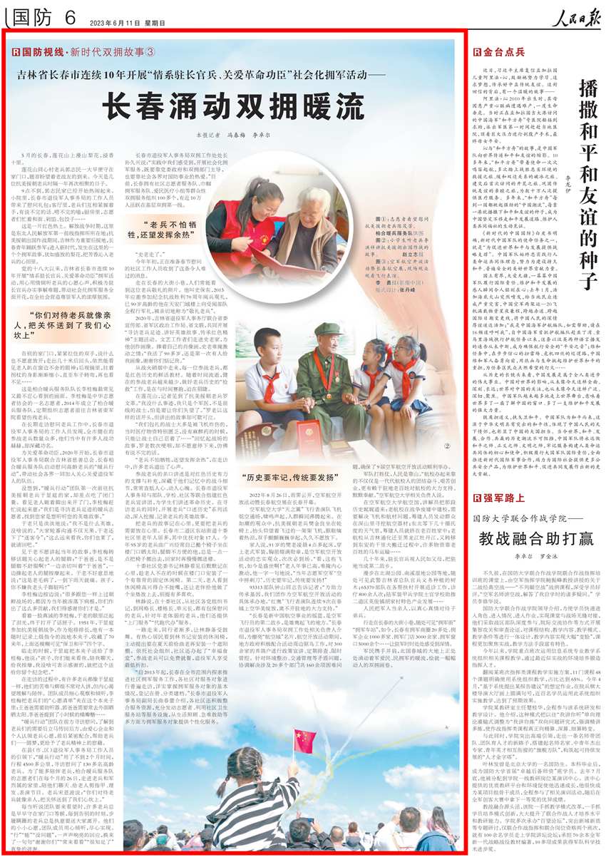 這是一片紅色熱土。解放戰爭時期,這里是東北人民解放軍第一前線指揮所所在地;抗美援朝出國作戰期間,吉林作為重要后援地,長春青年踴躍參軍;進入新時代,發生在這里的一個個擁軍故事,猶如盛放的梨花,把芳香沁入老兵的心田里。