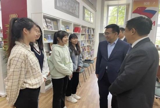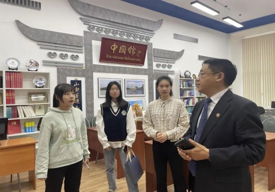 座談會(huì)后,代表團(tuán)參觀了圣彼得堡國立經(jīng)濟(jì)大學(xué)中國館,并慰問了吉林財(cái)經(jīng)大學(xué)在該校交換學(xué)習(xí)的留學(xué)生。張洪彬向他們表達(dá)了節(jié)日的問候,并鼓勵(lì)他們傳播中國優(yōu)秀傳統(tǒng)文化,講好中國故事。