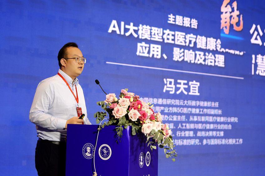 現今社會智慧技術如何與醫療健康結合?在主題報告環節,國家衛健委體改司公立醫院改革處處長張鐵山、吉林大學第二醫院院長秦彥國、吉林省衛生健康信息中心主任張啟軍、北京協和醫院副主任醫師吳楠、中國信息通信研究院云大所數字健康部主任馮天宜、中南大學湘雅醫院移動醫療教育部實驗室常務副主任黃偉紅分別就《公立醫院高質量發展的信息化賦能》《新時代高質量健康需求與數字化建設思考》《吉林省全民健康數據應用探索》《脊柱疾病的多中心研究及管理體系》《AI大模型在醫療健康領域的應用、影響及治理》《數字健康國家重點項目研究與醫療信創實踐》進行了深度交流。