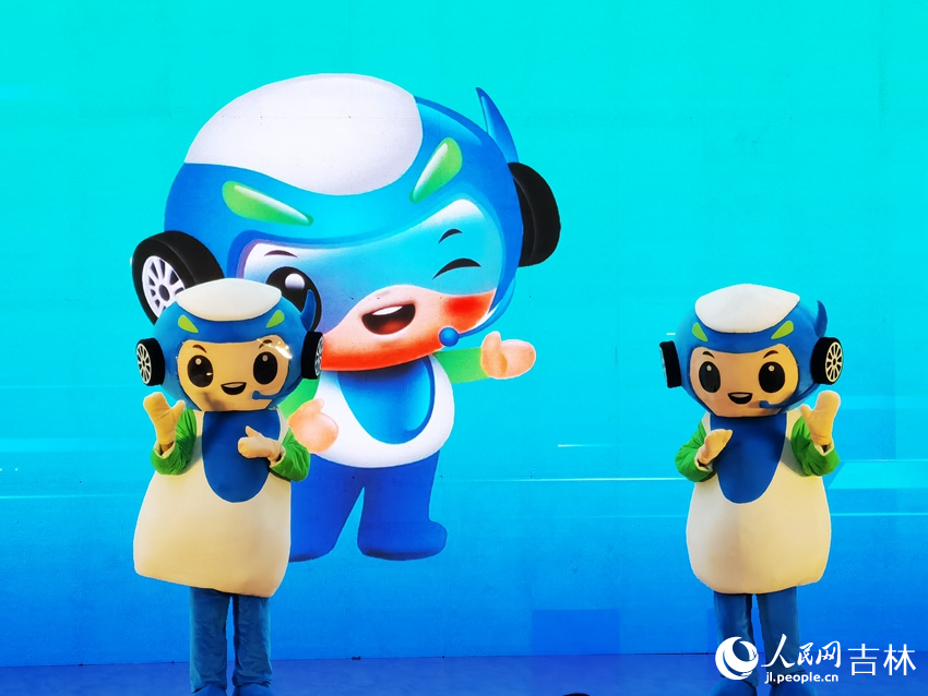 綠園吉祥物“車寶”在臺上和大家互動。人民網記者 王海躍攝