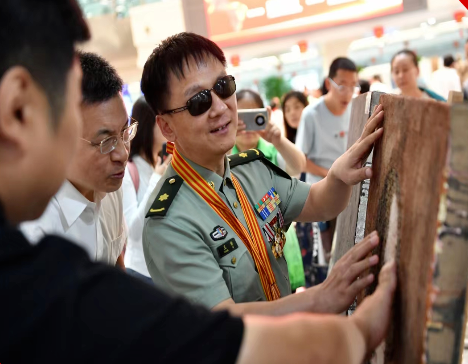 文藝工作者創(chuàng)作的一件件遒勁有力的書法作品,表達(dá)了對(duì)功勛老兵的崇高禮贊;部隊(duì)官兵圍繞“練兵備戰(zhàn)謀打贏、聚力強(qiáng)軍爭(zhēng)先鋒”主題創(chuàng)作的美術(shù)、攝影作品,展示了新時(shí)代革命軍人維護(hù)核心、建功崗位的昂揚(yáng)風(fēng)貌。來(lái)自長(zhǎng)春光華學(xué)院的大學(xué)生志愿者本依睿,聲情并茂地講述了抗美援朝老兵羅文革的故事,引起了現(xiàn)場(chǎng)觀眾的強(qiáng)烈共鳴;參加抗日戰(zhàn)爭(zhēng)、解放戰(zhàn)爭(zhēng)、抗美援朝戰(zhàn)爭(zhēng)的老兵李金福、羅文革和參加過(guò)西南邊境戰(zhàn)斗的一等戰(zhàn)功榮立者王琦現(xiàn)場(chǎng)演唱了《中國(guó)人民志愿軍軍歌》,將開幕式氣氛推向了高潮。全國(guó)“自強(qiáng)模范”、一等戰(zhàn)功榮立者、革命傷殘軍人王琦用手觸摸、用心感受著文藝工作者以他為原型創(chuàng)作的美術(shù)作品,心情激動(dòng)萬(wàn)分。15名參加過(guò)抗日戰(zhàn)爭(zhēng)、解放戰(zhàn)爭(zhēng)、抗美援朝戰(zhàn)爭(zhēng)的老兵畫像專區(qū)和以王琦為原型創(chuàng)作的書畫藝術(shù)作品專區(qū)吸引了很多觀眾,他們駐足欣賞、與老兵們合影留念,并向老兵們表達(dá)著尊崇之情。