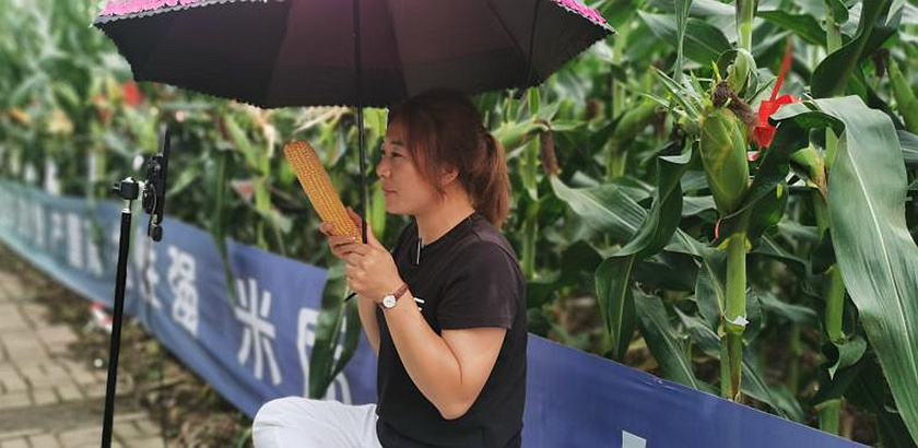 而在玉米及栽培展示區的另一頭,多名主播分散在玉米地旁,使出渾身解數,賣力地推銷著主打的玉米品種。