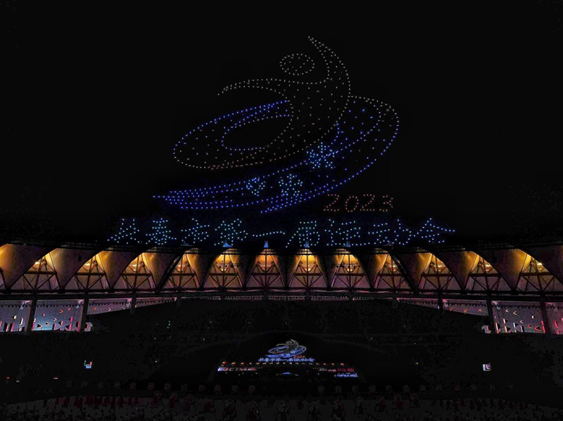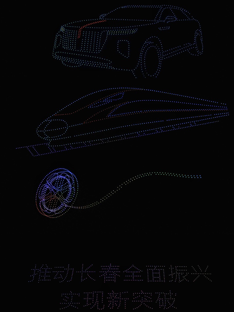 值得一提的是,“炫酷”的無人機表演盡顯此次運動會的科技含量和深刻內涵。夜空中,耀眼奪目的無人機編隊不斷變幻著文字和圖案,將長春“寬容大氣、自強不息”的城市精神演繹得淋漓盡致。最后,長春市第一屆運動會開幕式在會歌《向未來》的合唱聲中圓滿結束。