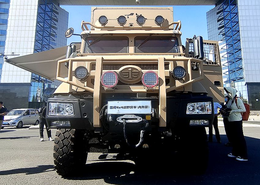 經(jīng)典的越野樣式前臉、上下兩排探照大燈、碳纖維箱體、中央自動充氣越野輪胎……解放·雪鷹粗獷霸氣、野性十足的外觀,吸引了不少國內(nèi)外越野愛好者的關(guān)注。這也是一汽解放正式進軍自主高端越野房車領(lǐng)域的代表作。