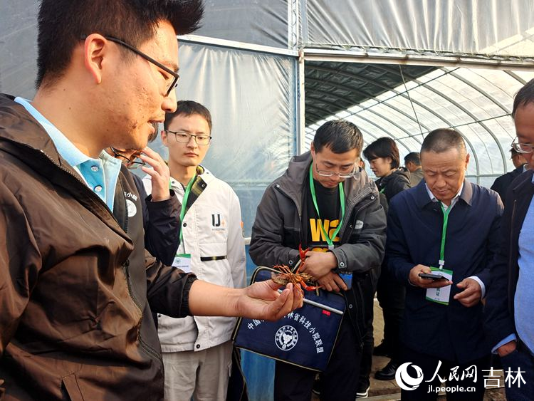 13日,參會人員前往公主嶺市南崴子村的公主嶺稻漁科技小院現場觀摩學習。稻漁科技小院以稻漁共生為核心,以生態循環、資源節約、增收致富為目標,建立了具有吉林特色的“雙邊溝+分箱式插秧”稻田養殖蝦蟹模式,該模式節省了水稻種植面積,提高了蝦蟹動物對飼料的利用率,便于機械化操作,已在吉林省推廣近10萬畝。為當地農民提供了一條綠色發展之路。團隊還成功研制出適應北方寒地環境的小龍蝦苗,為吉林省養蝦業的發展開辟了新的空間。