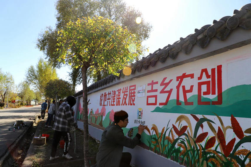 舒蘭市三梁村“吉鄉(xiāng)農(nóng)創(chuàng)園”:校地合作彩繪文化墻為鄉(xiāng)村振興“添彩”