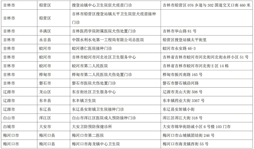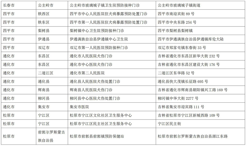 吉林省狂犬病暴露預防處置門診名單來了,請留存