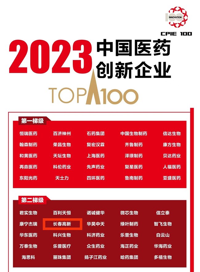 長春高新榮登“中國醫藥創新企業100強”榜單