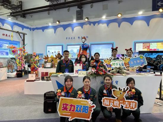 今年是雙陽區第六次參展雪博會,本屆展位在靜態展示方面,體現了“冰雪+溫泉、冰雪+節慶、冰雪+商貿”等冬季元素,又匠心設計了神鹿之韻主題板塊、幸福之翼打卡區和多處鹿一一吉祥物雕塑、小鹿模型,凸顯了“中國鹿鄉 自在雙陽”的地域特色。