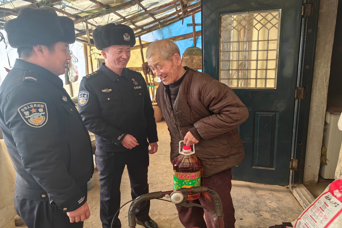 走訪慰問過程中,民警為老人們送去了米、面、油等生活物品,并送上了新春的祝福和問候。在老人家中,民警與他們“面對面”接觸,“心連心”交流,詳細詢問他們的身體狀況、醫(yī)療、養(yǎng)老保障和生活情況。