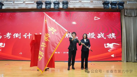 儀式上,薛紅利代表學校為高考倒計時100天揭牌并為高三年級授戰(zhàn)旗,年級教務主任寧曉輝代表高三年級接旗。授旗壯行、揮旗出征,獵獵戰(zhàn)旗、拳拳雄心,披甲出征、亮劍高考!
