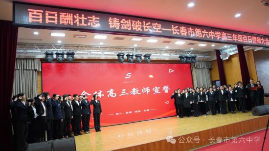 龍馬精神啟新篇,熱辣滾燙逐夢想。為進一步激發(fā)高三學子的學習熱忱,堅定沖刺高考的必勝信念,2月27日,長春市第六中學舉行“2024屆高考百日誓師大會”。校長李曉天,黨委書記張建國,副校長楊永忠、薛紅利、汪延德及校辦主任孫爽,高三年級教務處主任寧曉輝與高三師生及家長代表共赴這場青春盛宴,見證這莊嚴而神圣的時刻。