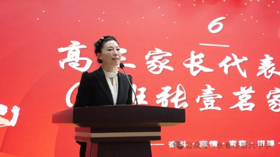 高三學生張壹茗的母親作為家長代表發(fā)言。她首先代表2024屆學生家長對學校領(lǐng)導和老師們表示崇高的敬意和衷心的感謝。勉勵每一位孩子咬定目標、堅持到底,為高中生活畫上圓滿的句號,讓青春留下無悔的印記。