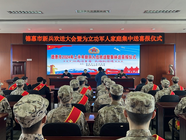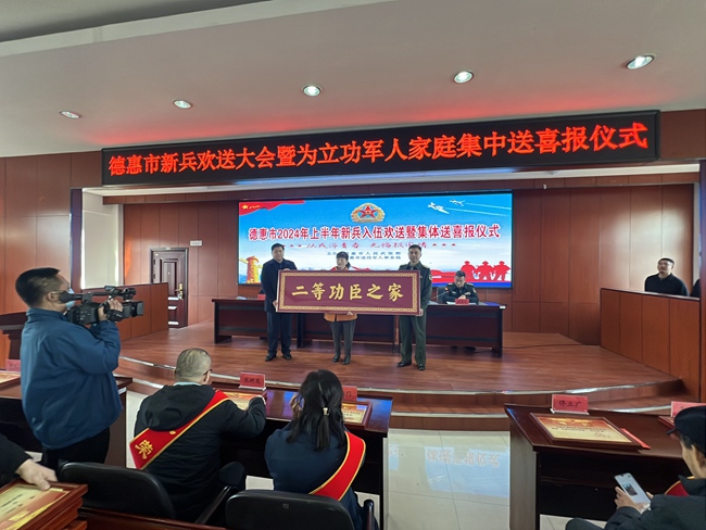 為大力弘揚擁軍優屬光榮傳統,鞏固發展新時代軍政軍民團結,在全社會營造關心國防、熱愛國防、建設國防、保衛國防的濃厚氛圍,3月15日,德惠市舉行2024上半年新兵歡送大會暨為立功受獎功臣家庭集中送喜報活動。