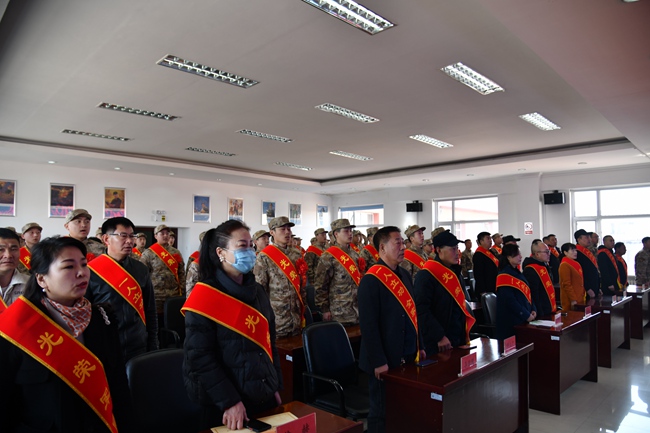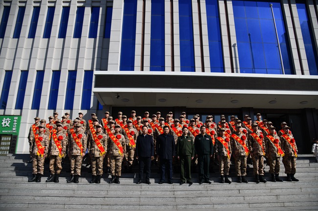 參加儀式的相關領導對即將開啟軍旅生涯、踏上保家衛國征程的新兵表示祝賀,希望新兵們早日成為一名“有靈魂、有本事、有血性、有品德”的“四有”新時代革命軍人;希望新兵們勇挑時代重任,不負期待,為家鄉增光添彩;參加儀式領導對軍屬們多年來一直默默支持子女獻身國防表示崇高敬意,希望他們繼續鼓勵孩子在部隊再接再厲、積極進取,為部隊和國防建設再立新功。儀式上,新兵們身著戎裝、胸佩紅花、個個身姿挺拔、精神抖擻、意氣風發,臉上洋溢著對軍營生活的美好憧憬;軍屬們信心滿懷、躊躇滿志。參加儀式的領導分別為新兵們披上綬帶、佩戴大紅花,為軍屬們送上喜報、獎勵金及功臣之家牌匾,系列尊崇關愛活動激發了新兵們建功軍營的報國熱情,堅定了軍屬們支持國防和軍隊建設的信心。