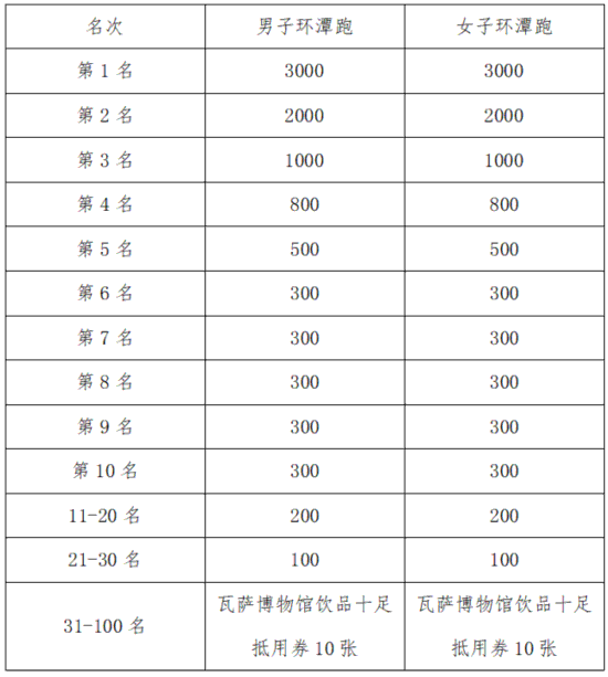 環(huán)潭跑項目名次獎(環(huán)潭跑名次獎1-3名按照槍聲成績排名,其余名次按凈計時排名。)
