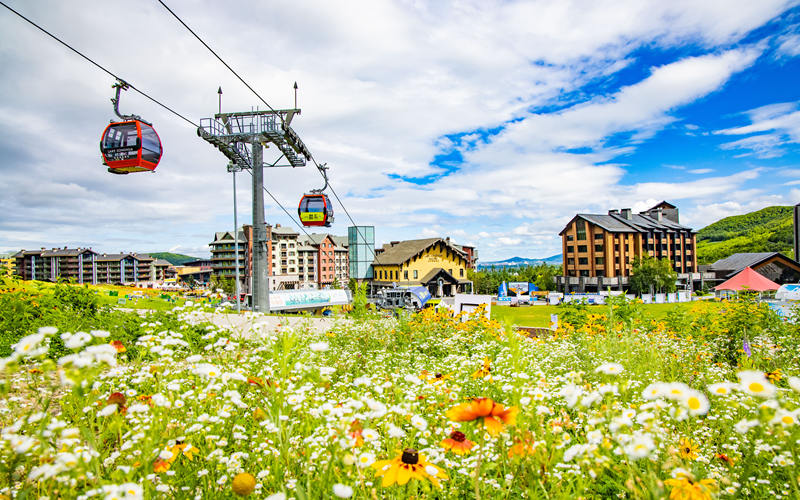 而在春季鮮花盛開時,度假區里的一頂頂帳篷便整齊有序地鑲嵌在雪道變成的草地上,音樂會、山地車越野賽、登山等活動輪番上演,白天可以在山上賞花看景,夜晚可以在山下露營歡唱……今天,在滑雪場度假成為了游客們頗為喜愛的休閑方式。