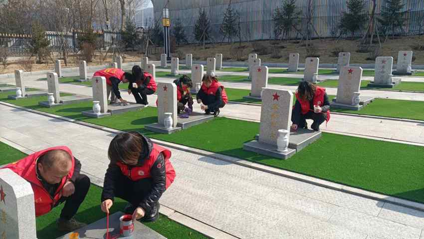 活動中,全體干部職工懷著崇敬的心仔細對烈士陵園和烈士墓園進行地面清掃、清除雜草、擦拭墓碑、碑體描紅等,通過大家共同努力,陵園環境煥然一新,變得更加整潔,莊嚴肅穆。