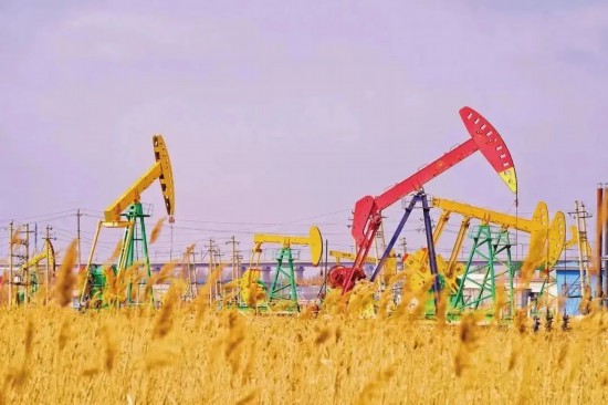 ▲2023年3月26日,黑龍江大慶,游梁式抽油機在開采原油。孫漢侖攝(中新社發)
