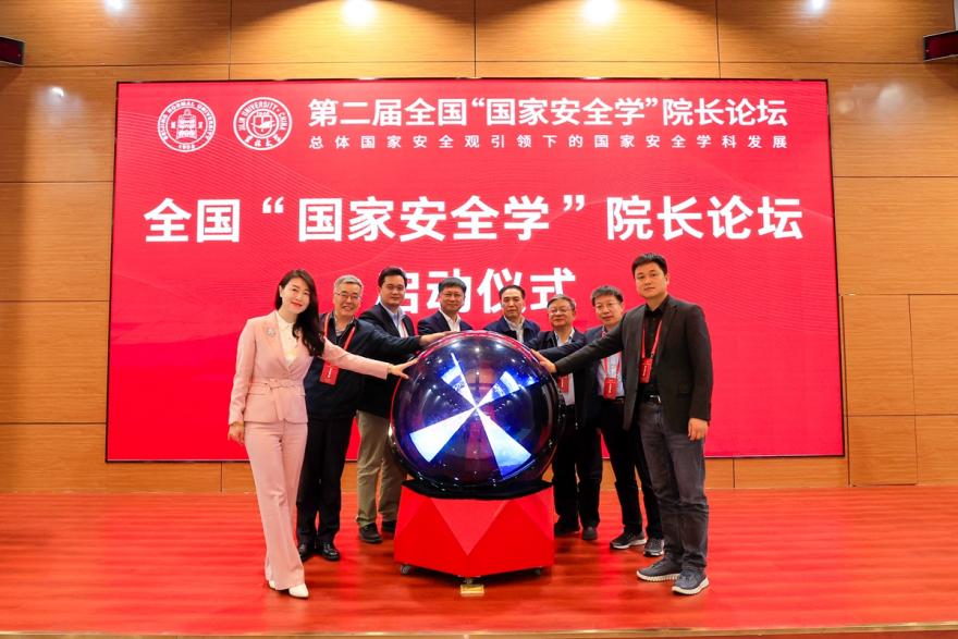 開幕式上舉行了全國(guó)“國(guó)家安全學(xué)”院長(zhǎng)論壇啟動(dòng)儀式。張希與國(guó)務(wù)院學(xué)位委員會(huì)學(xué)科評(píng)議組成員唐永勝、汪明、北京大學(xué)國(guó)際關(guān)系學(xué)院院長(zhǎng)唐士其、復(fù)旦大學(xué)國(guó)際關(guān)系與公共事務(wù)學(xué)院院長(zhǎng)蘇長(zhǎng)和、南京大學(xué)政府管理學(xué)院副院長(zhǎng)張海波,吉林大學(xué)公共外交學(xué)院、國(guó)家發(fā)展與安全研究院院長(zhǎng)肖晞以及清華大學(xué)安全科學(xué)學(xué)院黨委書記申世飛共同按下啟動(dòng)球,全國(guó)“國(guó)家安全學(xué)”院長(zhǎng)論壇正式啟動(dòng)。