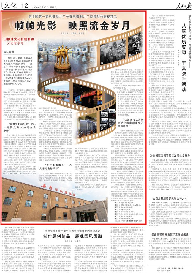 人民日報關(guān)注長春電影制片廠:幀幀光影 映照流金歲月
