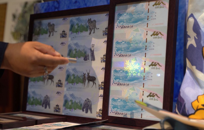 在展會現場,首次亮相的長白山紀念門票備受關注。此次紀念門票項目是長白山東北文化旅游投資有限公司與西安印鈔有限公司合作的成果,這套紀念門票不僅在設計上獨具匠心,還通過多種防偽工藝展現了鈔券的獨特魅力。
