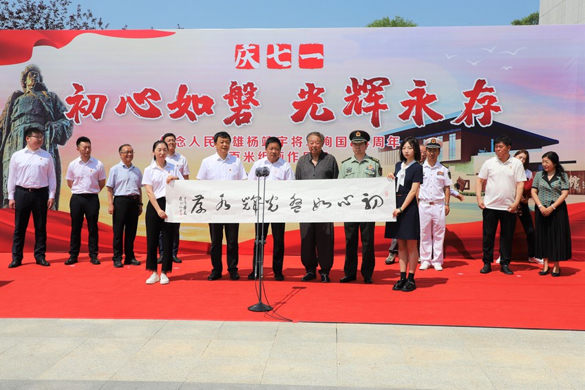 7月1日,由中共吉林省委黨史研究室、中共磐石市委、磐石市人民政府、吉林省冰雪絲路書畫院聯合舉辦的百米組畫《人民英雄楊靖宇》作品展走進磐石,進行為期5天的展覽。省委黨史研究室相關領導,確山縣相關領導,人民大會堂特約畫家、吉林省冰雪絲路書畫院院長、百米組畫《人民英雄楊靖宇》作品主創者趙明仁,主創者孫立民,楊靖宇后人馬鋮明,磐石市黨政機關領導、干部、學生代表、部隊官兵代表200余人參加開幕式。