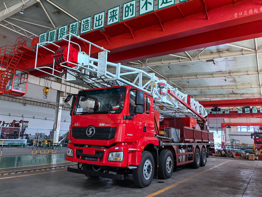 走進通化石油化工機械制造有限責任公司,高聳入云的鉆井修井車載設備正在進行負荷試驗,該設備鉆井深度3000米,修井深度8000米,最大提負荷能力180噸,是目前國內最大的車載鉆修機,產品通過試驗后,將銷往國內外各大油田。