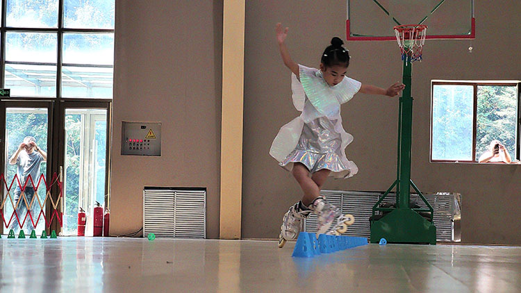 比賽現場,隨著裁判的一聲令下,運動員們以最快的速度起滑,壓低身子,飛馳向前,全力朝向終點,速度過樁、花式繞樁、花式對抗、花式剎停……他們身輕如燕,爭分奪秒,矯健的身影、靈巧的動作將速度與激情體現的淋漓盡致。場外教練員、家長群眾呼聲陣陣,場面熱烈,呈現了一場力與美的視覺盛宴。