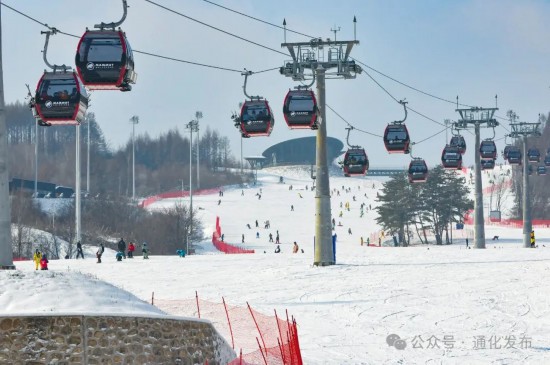據(jù)介紹,萬峰通化滑雪度假區(qū)有初、中、高級雪道33條,雪道總長31公里,最長雪道4.5公里,最高點海拔960米,有效落差560米、最大坡度38度,雪道層次多樣、變化繁多。4條脫掛索道,總運力達14000人次/小時。同時,萬峰通化滑雪度假區(qū)設(shè)有6座不同風格特色的星級酒店,客房1200余間、2800多張床位;度假區(qū)內(nèi)建有一條具有北美風情的特色商業(yè)街,集特色美食、民族美食、地方特色小吃、國際級雪具品牌、戶外運動品牌、酒吧、KTV、親子樂園、綜合超市于一體,可為雪友提供一站式服務。2023-2024雪季共有59萬人次來到這里享受滑雪的樂趣。