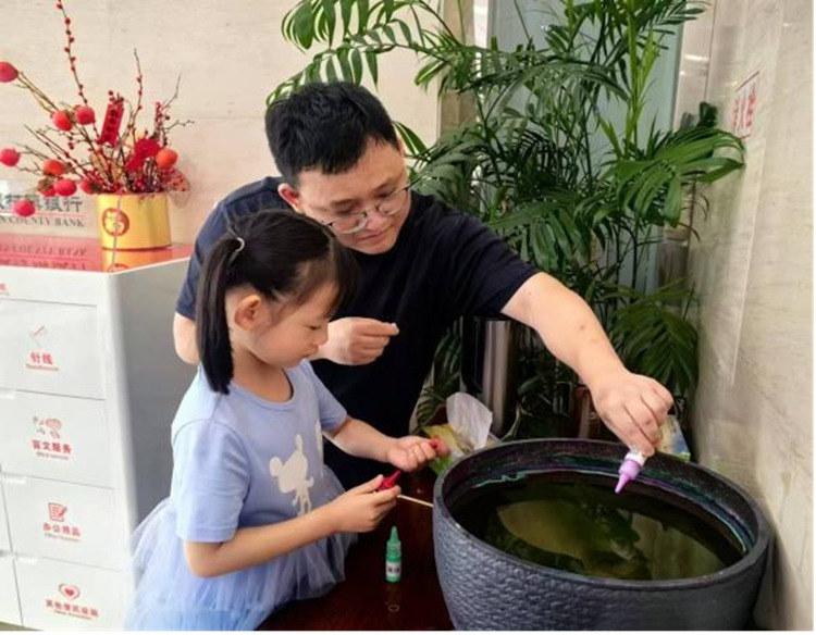 營業部于9月14日-9月17日期間舉辦了漆扇制作活動,借非遺文化之瑰麗,把美好的祝愿傳遞給群眾。用戶在辦理完定期存款后可以來到公眾教育服務區參與漆扇制作。工作人員詳細講解了漆扇的制作流程和技巧,大家一邊制作漆扇,一邊交流著自己的心得和感受,現場氣氛熱烈,歡聲笑語不斷,讓用戶們感受到了濃厚的節日氛圍。