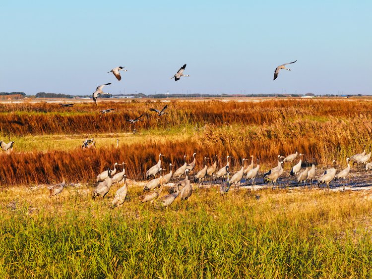 鎮(zhèn)賚縣,作為松嫩平原與科爾沁草原的交匯之地,同時也是全球最大候鳥遷徙通道的關鍵節(jié)點,東亞至澳大利西亞候鳥遷徙通道上,每年有超過500萬只鳥類過境,而白鶴無疑是這條生命通道上最為耀眼的明星之一。全球僅存的約6000只白鶴中,有高達90%的個體在春秋兩季選擇鎮(zhèn)賚作為它們的停歇之地。