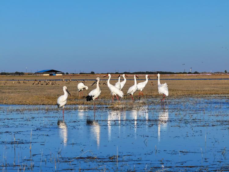 更令人欣喜的是,這群白鶴并非孤軍奮戰(zhàn),它們與被譽為“鳥類大熊貓”的東方白鸛共舞,共同編織了一幅生動和諧的生態(tài)美景。此外,近千只灰鶴、數(shù)百只白琵鷺,以及不計其數(shù)的大雁與野鴨,也紛紛匯聚于此,共同演繹了一場熱鬧非凡的自然盛宴。