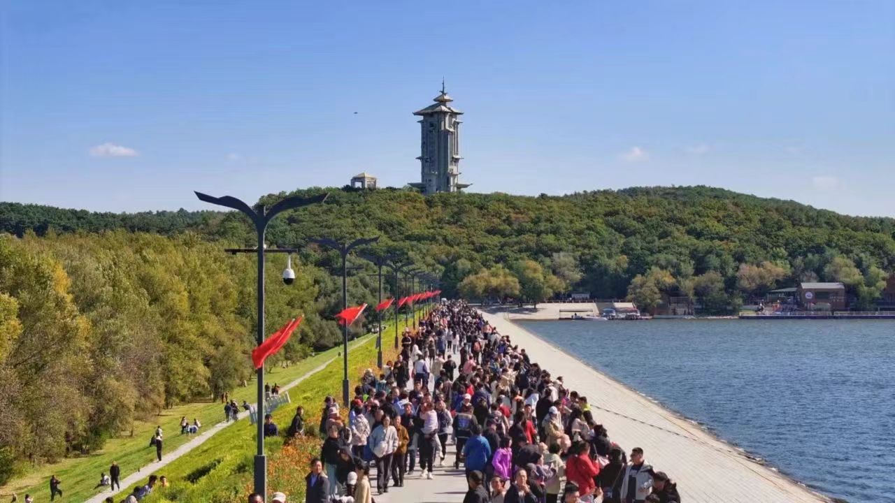 長春凈月潭在國慶期間開展舞蹈快閃、樂隊演奏、國風演出等活動,假期前兩日接待游客人次同比增長61% 。在女神廣場和彩車廣場舉辦的非遺市集上,一件件精美的手工藝品吸引游客駐足,國慶特別主題活動——微笑中國則吸引游客紛紛打卡處拍照,和家人朋友在凈月潭留下最美的笑臉。