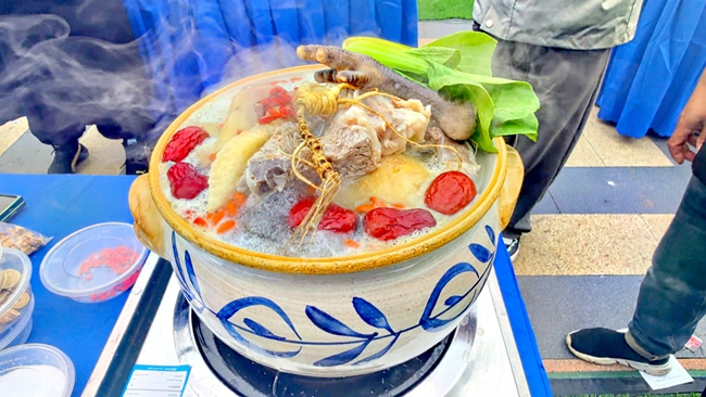作為長白山人參的道地核心產區,人參一直以來都是通化特色產業和美食版圖上璀璨的明珠。比賽現場,各參賽隊伍紛紛拿出看家本領,以通化道地人參為原料,現場烹飪各式滋補鮮香的人參雞湯,將人參巧妙地融入一道道美味佳肴之中,不僅保留了傳統人參雞湯的精髓,更在烹飪技藝和口味上進行創新,使這道傳統美食煥發出新的活力。