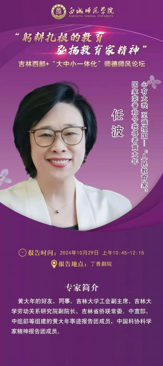 由白城師范學院與白城市教育局聯(lián)合主辦,“吉林西部+”校地協(xié)同創(chuàng)新聯(lián)盟成員單位協(xié)辦的“躬耕扎根的教育 弘揚教育家精神”吉林西部+“大中小一體化”師德師風論壇,將于2024年10月29日舉辦。