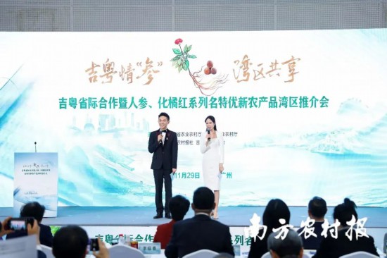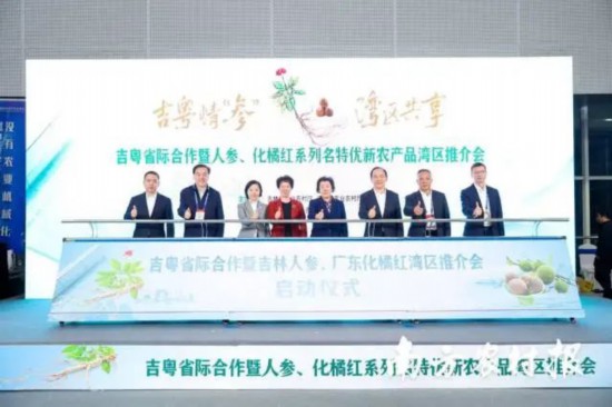 11月29日,吉粵省際合作暨人參、化橘紅系列名特優新農產品灣區推介會在第二十一屆中國國際農產品交易會(簡稱“農交會”)上亮相。在吉粵省際合作背景下,推介會以“吉粵情‘參’ 灣區共享”為主題,推動吉林人參與廣東化橘紅兩大著名藥食同源名品面向灣區、走向世界。