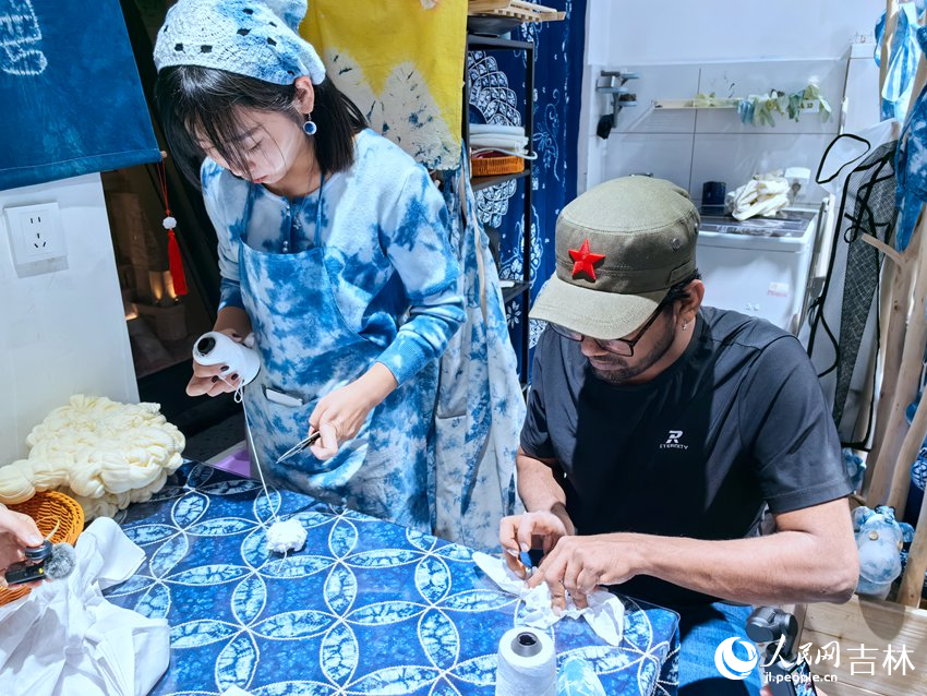 “在我們國家有個和扎染類似的工藝,也是用植物做染料,我很好奇中國的扎染,所以想試一下。第一次做扎染,這對我來說是非常美好的回憶和紀念?!眮碜运估锾m卡的一位記者學習扎染后興奮地說。