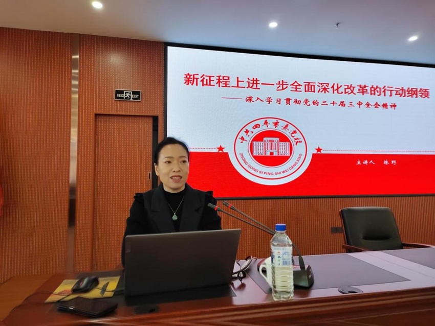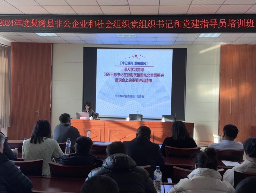 及時宣傳全會精神,鑄就堅實理論根基。中共四平市委黨校教育長林野教授緊密結合四平市發展戰略和梨樹縣“兩企三新”黨建工作實際,對黨的二十屆三中全會精神進行專題解讀,圍繞進一步全面深化改革的背景、目標和著力點以及重大舉措三個方面,解讀黨的二十屆三中全會精神內涵。培訓圍繞非公企業黨的建設設置課程,基本實現全縣“兩企三新”領域黨組織書記培訓全覆蓋,著重夯實黨建工作者理論基礎,特別是讓新學員學懂弄通為什么抓企業黨建、怎樣抓企業黨建、如何通過紅色領航促進民企發展。
