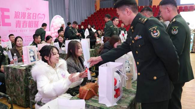 12月7日,由延吉市退役軍人事務局、共青團延吉市委、駐延某部共同舉辦的2024年“愛在延吉 情定軍營”軍地聯誼會浪漫開啟,40位女青年走進軍營與部隊單身青年官兵共赴“鵲橋”。