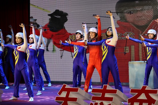 吉林體育學(xué)院也帶來了多個(gè)精彩表演。舞蹈《越》以“中國滑雪之父”、第一位全國滑雪冠軍單兆鑒為人物背景,用舞蹈語言講述他努力拼搏,弘揚(yáng)中國體育精神,帶領(lǐng)新一代冰雪健兒征服雪山,為國爭光的勵(lì)志故事;武術(shù)表演《循禮而為》傳相互尊重、協(xié)作共贏之價(jià)值觀,彰顯武術(shù)構(gòu)建和諧社會關(guān)系之意,使觀者感其人文關(guān)懷與和諧之美;此外,詩朗誦、歌曲《有我》和《璀璨冒險(xiǎn)人》,激勵(lì)青年在璀璨的青春歲月,用汗水澆灌夢想,用奮斗書寫華章,帶給在場師生無盡的信念與力量。思政課在大合唱《歌唱祖國》中圓滿結(jié)束。