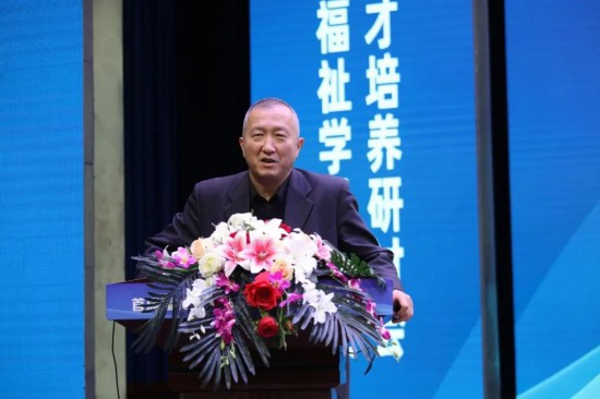 學校校長張興海代表學校致辭,他介紹了學校福祉學科的建設情況,系統梳理了中國福祉學的發展脈絡,詳細闡述了馬克思主義視閾下的福祉理論體系和學科建設構想。