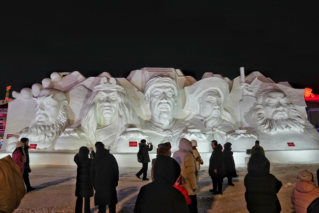 據悉,環東山文旅綜合體共分為國潮彩燈區、藝術冰雕區、玩冰嬉雪區、互動演藝區、商業區等板塊,將冰雪藝術、傳統文化與現代娛樂完美融合。走進主會場天陸山冰雪歡樂薈,3萬立方米冰雪打造出的60余組冰雪雕點亮了冬日的寒夜。據悉,今年雪季,遼源在冰雪雕設計中,融入了四大名著《水滸傳》《西游記》兩大主題IP,為觀眾朋友們再現經典。