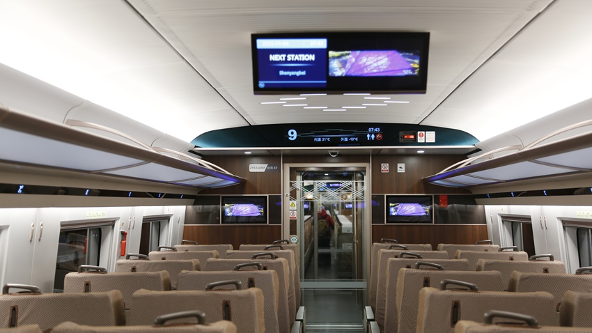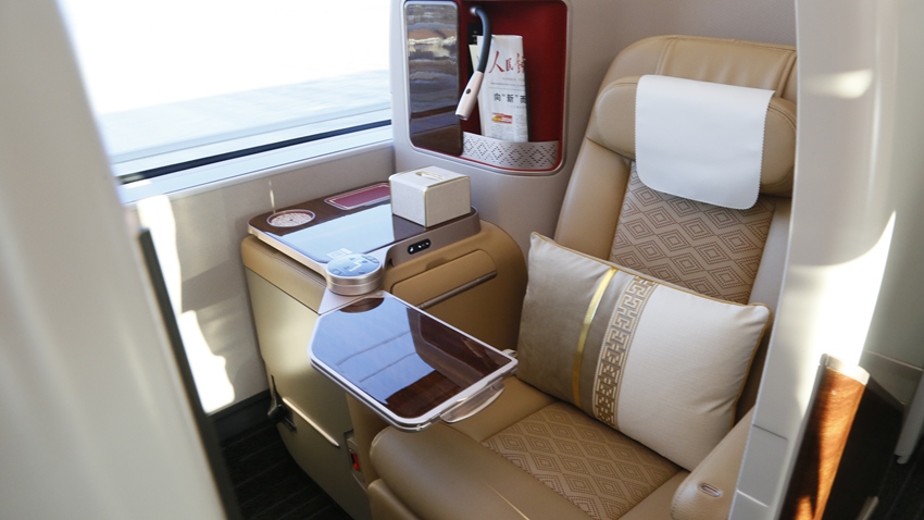 從內(nèi)部環(huán)境看,“智能復興號”配備了更加舒適的座椅、更先進的空調(diào)系統(tǒng)、更高規(guī)格的音響和電影娛樂系統(tǒng)。在一等座和二等座增加了USB充電接口,適度增加小桌板的凹陷深度;為商務(wù)座車廂配備智能交互終端和智能照明系統(tǒng)等,可以更好地滿足不同旅客的出行需求。