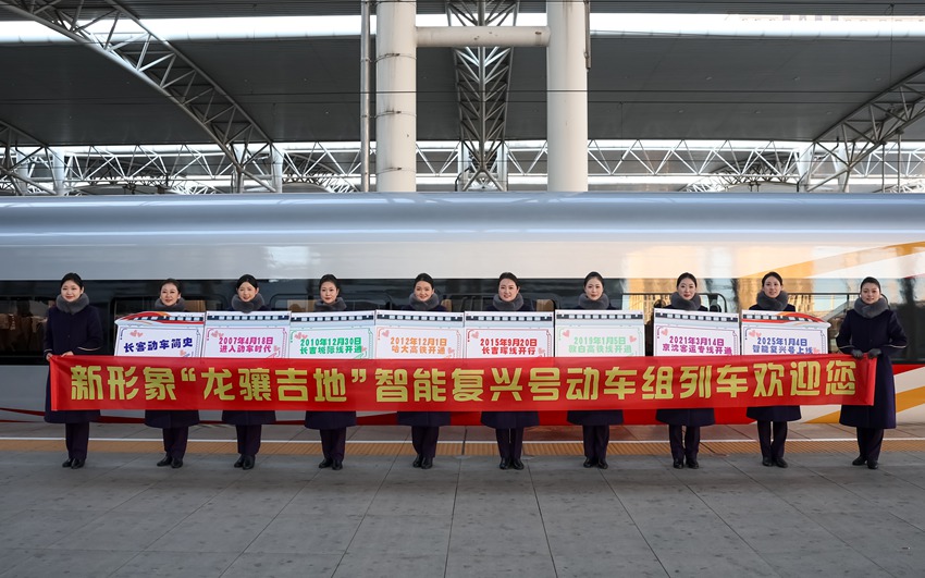 這趟G912次列車由沈陽局集團有限公司長春客運段動車二隊擔當乘務(wù)工作。為慶祝吉林省首趟“智能復興號”開行,車隊還組織職工文藝骨干編排了精彩的文藝節(jié)目,與旅客互動。