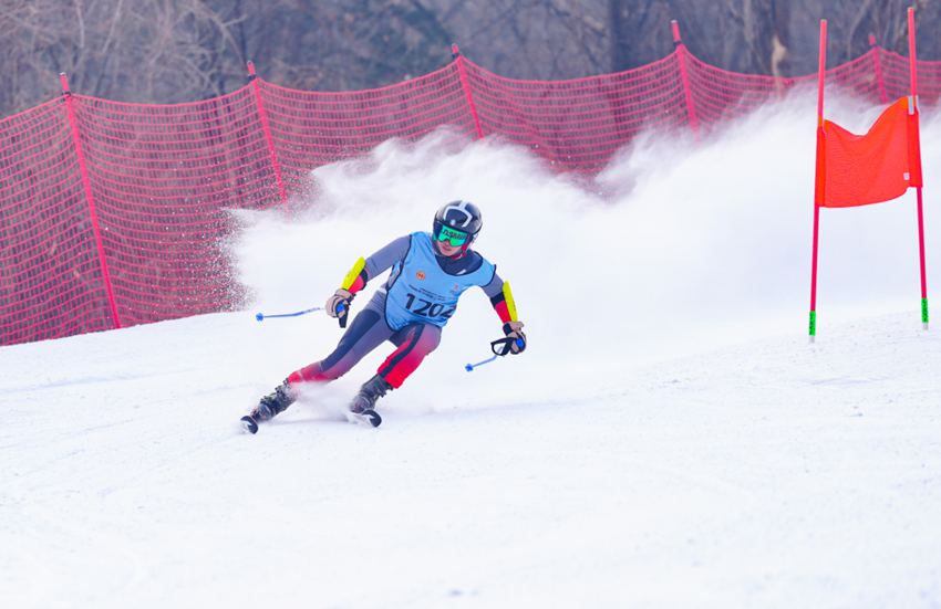 當日,隨著賽事的正式開啟,參賽選手各個精神抖擻,在雪道上飛馳,成為雪場中一道流動的亮麗風景。