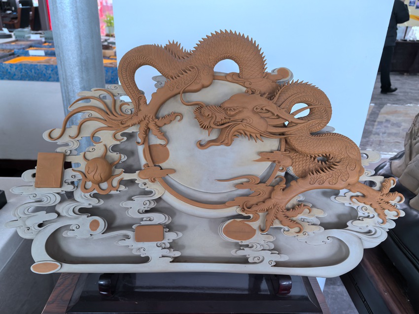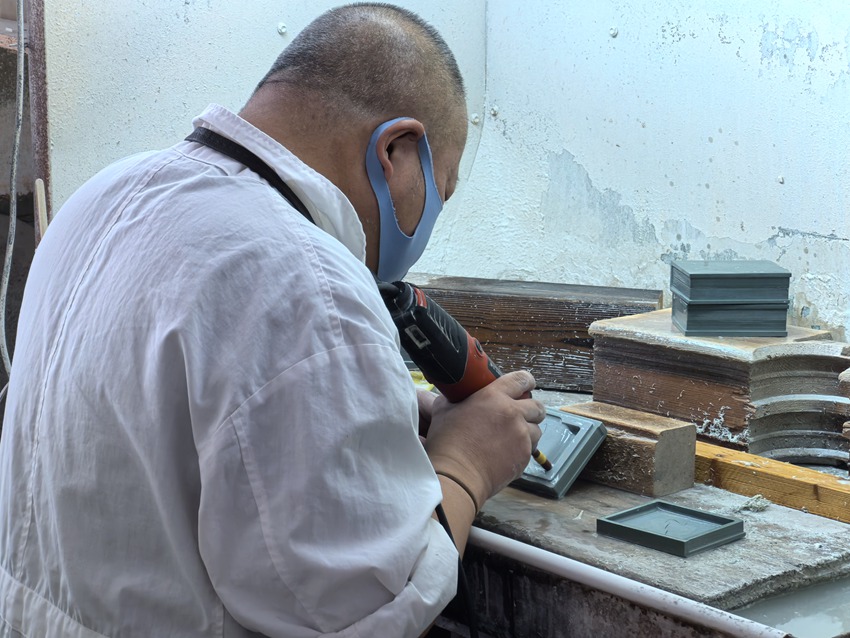 “我從小跟著家里學(xué)習(xí)木雕,2016年開始從事松花石雕刻,從硯臺(tái)開始。”通化石雕技藝傳承人、松花石實(shí)訓(xùn)基地負(fù)責(zé)人張新始終鉆研打磨他摯愛的松花石雕刻事業(yè)。