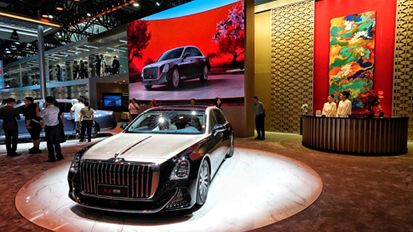 第21屆長(zhǎng)春國際汽車博覽會(huì)上,一汽紅旗金葵花展廳。