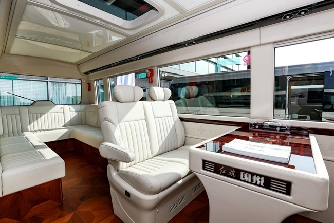 紅旗國悅?cè)嚧钶d雙層靜音玻璃,車身各空腔填充原生吸音棉,運(yùn)用電子硅油離合器、自主靜音輪胎等40多項(xiàng)隔音降噪技術(shù),打造心靜神凝的乘車環(huán)境??臻g方面,紅旗國悅提供17、19、20、23座位的多樣化布局,實(shí)現(xiàn)同級領(lǐng)先的空間設(shè)計(jì);配置一體式座椅、可一鍵投屏的折疊電視,折疊秘書桌、高效空調(diào)系統(tǒng),人性化辦公設(shè)備隨處可享,充分滿足出行途中的辦公、匯報(bào)需求……