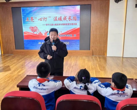 活動特邀吉林省心理咨詢協(xié)會理事、敦化市心理咨詢協(xié)會理事長鄭冬偉教授為留守兒童授課。講座聚焦留守兒童常見的心理困惑,通過“認(rèn)識情緒小怪獸”“畫出我的安全島”等趣味互動,引導(dǎo)孩子學(xué)會情緒管理和自我接納。同時,鄭冬偉教授結(jié)合典型案例,用通俗易懂的語言講解了應(yīng)對孤獨、焦慮等心理問題的技巧。